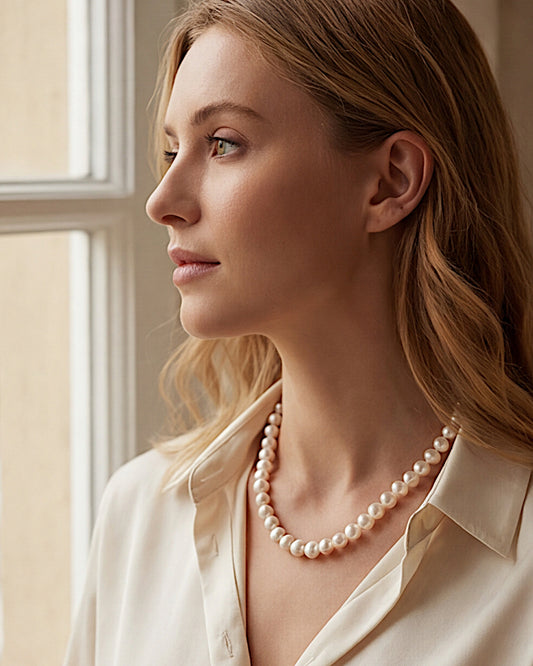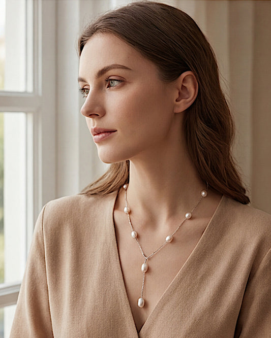 Schmuckset. Halskette und Ohrringe aus 925er Sterlingsilber mit tropfenförmigen Süßwasserperlen