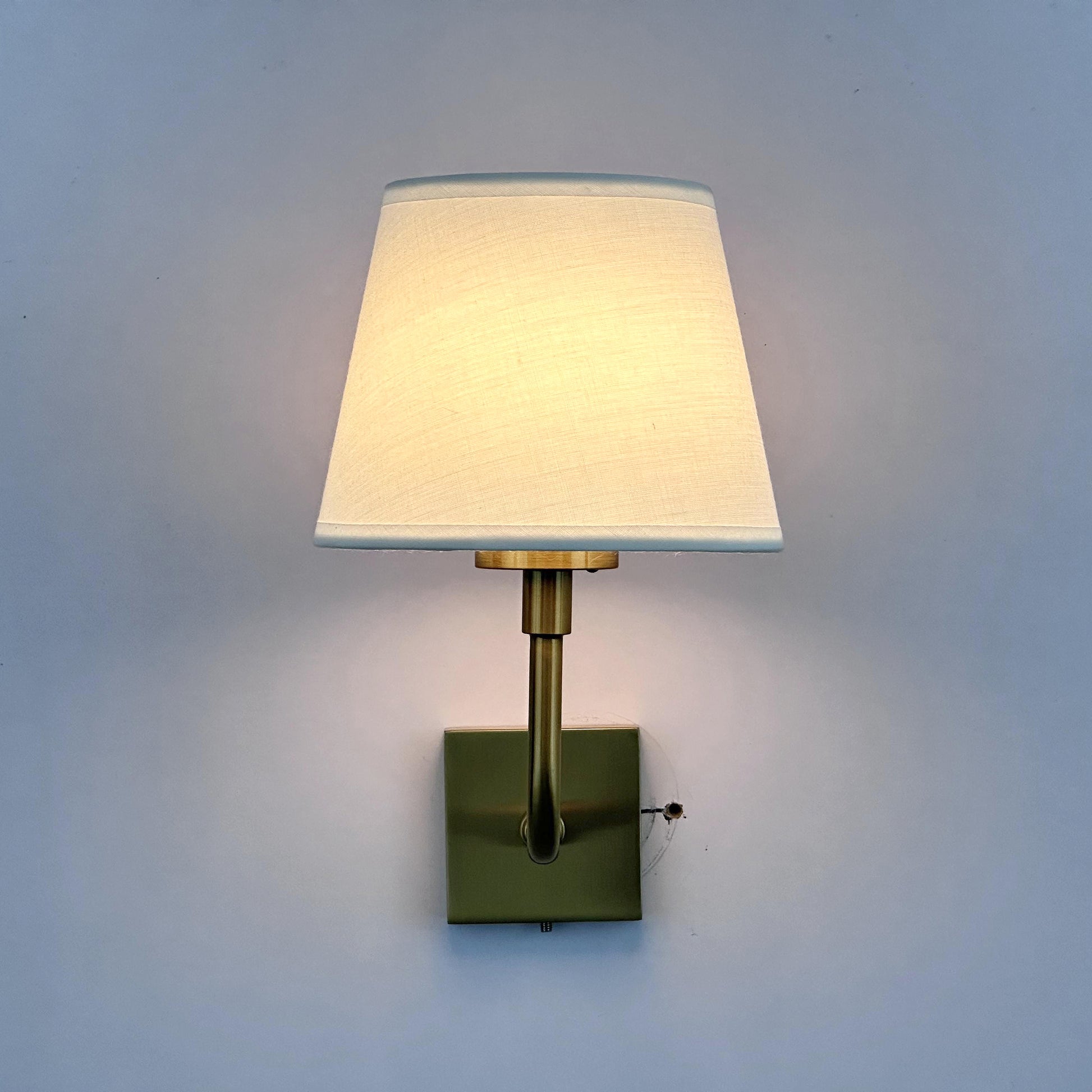 Compact and elegant wall lamp with a high-quality fabric shade and sturdy iron body. It provides warm, pleasant light and is ideal for bedrooms, hallways, or living rooms. Thanks to its integrated battery, three-stage brightness control, and easy operation via a push-button switch, it combines functionality with stylish design.
