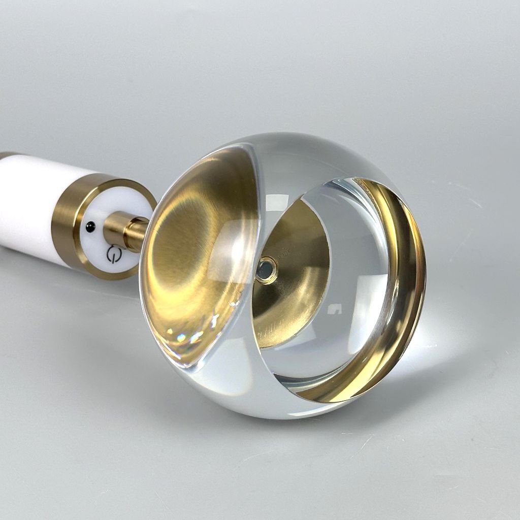 Elegant table lamp with a gold stand, decorative fabric shade, and round crystal base. Thanks to its integrated lithium battery, the lamp can be used wirelessly. With its three-stage touch dimmer, it provides warm, cozy light – perfect for bedrooms, living rooms, or as a stylish accent in restaurants.
