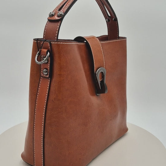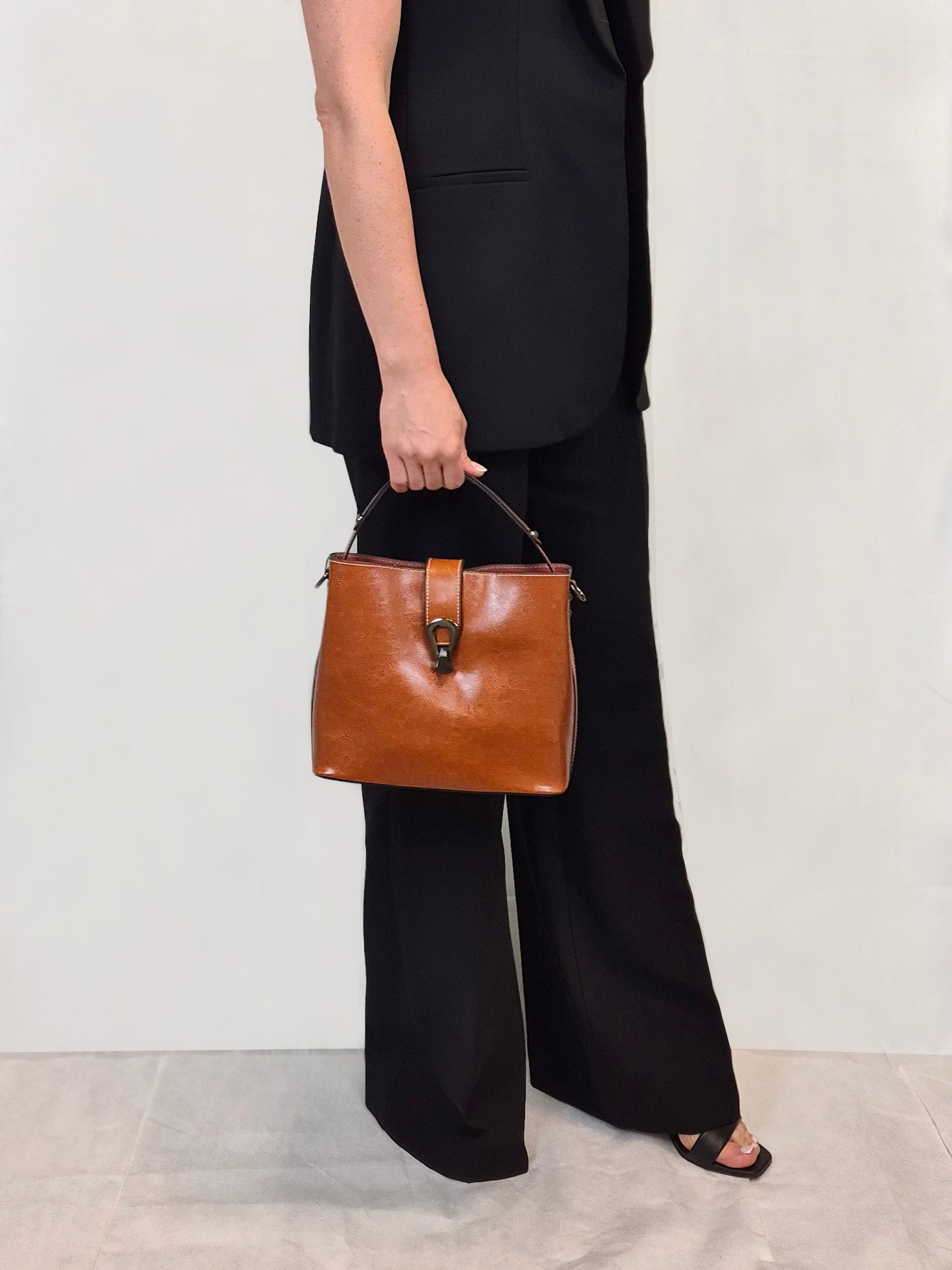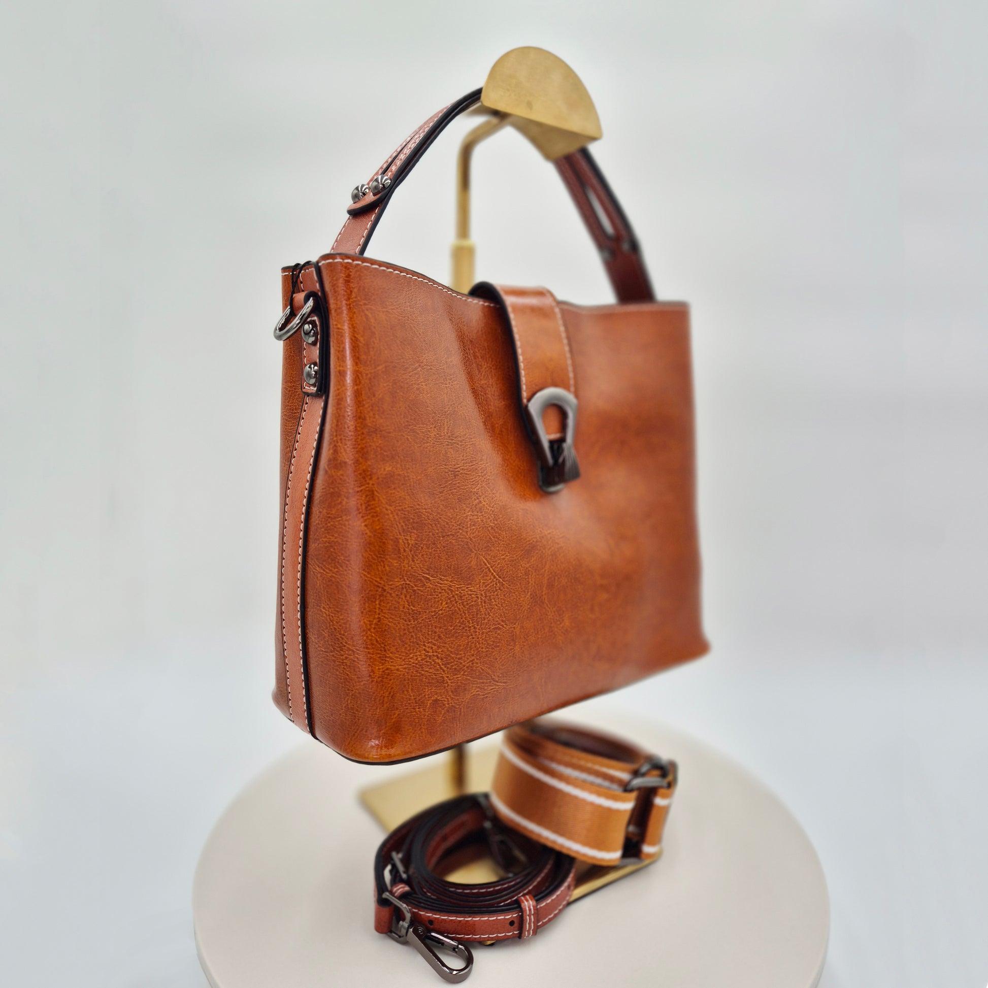 The Model 9142 handbag, crafted from genuine leather, impresses with its minimalist yet elegant design. Thanks to its robust construction, classic cut, and practical interior compartment, it's the perfect companion for everyday life, the office, and leisure activities. The detachable shoulder strap allows the bag to be carried by hand or comfortably over the shoulder.