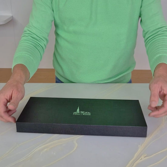 - Das Hauptmesser Santoku (7,5" / 18 cm, 211 g) meistert das Schneiden von Gemüse, Fleisch und Fisch.