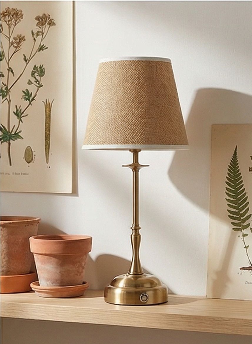 Stilvolle Tischlampe mit goldenem Fuß und dekorativem Stoffschirm. Die Lampe verfügt über einen eingebauten Akku und kann kabellos bis zu 24 Stunden genutzt werden. Mit der dreistufigen Touch-Dimmung schaffen Sie jederzeit die perfekte Atmosphäre – ideal für Wohnzimmer, Schlafzimmer oder Restaurants.