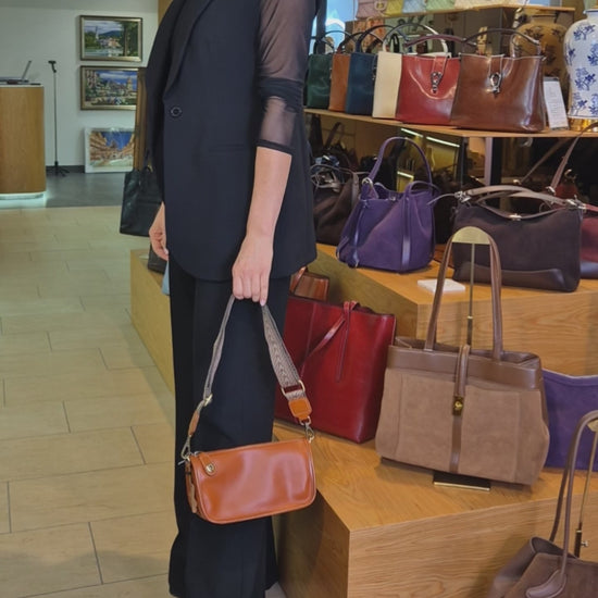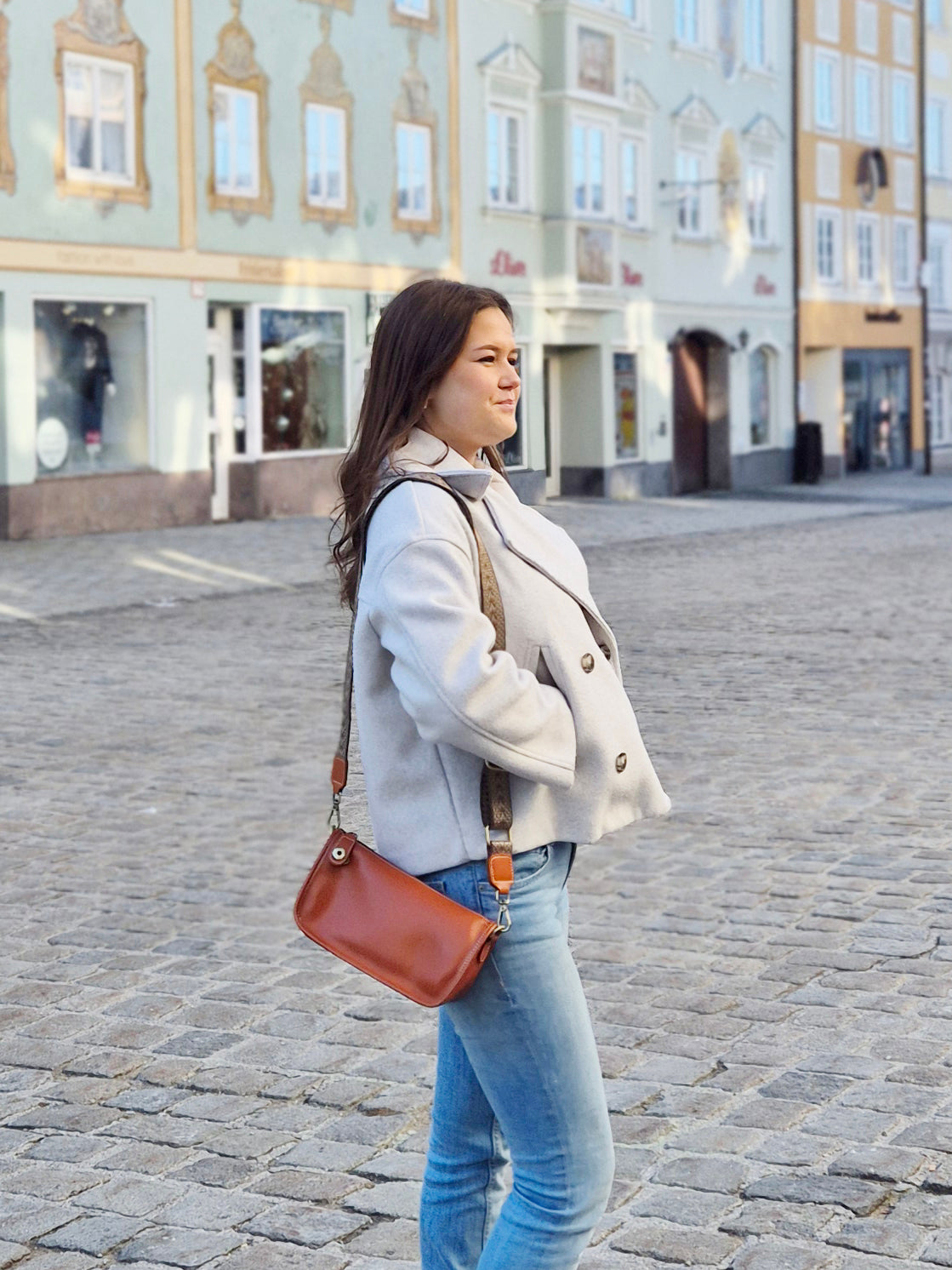 Unsere elegante Handtasche aus echtem Leder vereint zeitloses Design und Funktionalität.