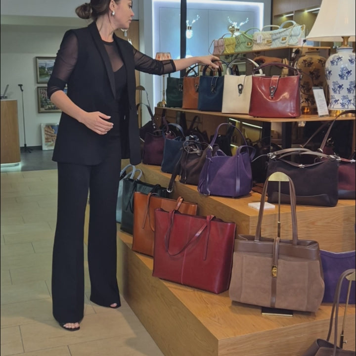 Die Handtasche "Flora" aus echtem Leder überzeugt durch ihr minimalistisches und zugleich elegantes Design. Dank stabiler Verarbeitung, klassischem Schnitt und praktischem Innenfach ist sie ein perfekter Begleiter für Alltag, Büro und Freizeit. Mit abnehmbarem Schulterriemen kann die Tasche sowohl in der Hand als auch bequem über der Schulter getragen werden.