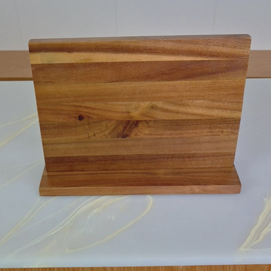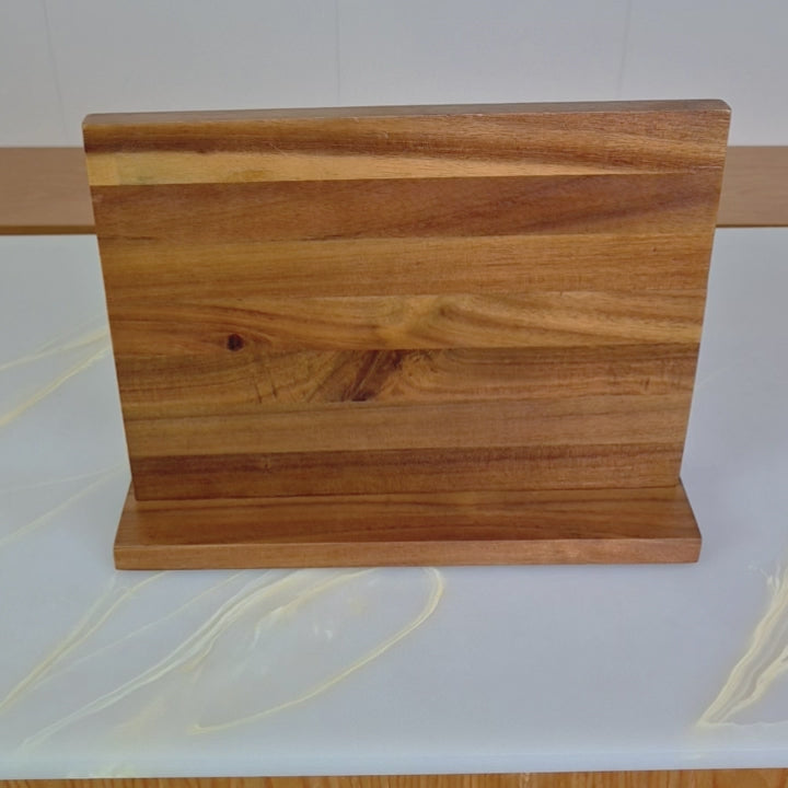 Der hochwertige magnetische Messerhalter aus Akazienholz bietet eine elegante und sichere Aufbewahrung für Küchenmesser. Durch die starke Magnetfläche haften die Messer stabil und sind jederzeit griffbereit. Die natürliche Holzoptik fügt sich stilvoll in jede Küche ein.